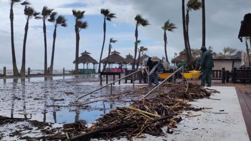 Intenso temporal el sufrido este lunes en las playas de la comarca. Hoy, con algo más de calma y una pequeña tregua en el cielo, se conocen los destrozos y evalúan los primeros daños. Mobiliario urbano y de playas destrozados, infraestructuras dañadas, mantos de alga asiática donde antes había arena y arena donde antes había calzada. Viviendas, chiringuitos y otros establecimientos a pie de costa, gravemente afectados.