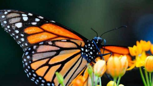 La mariposa monarca (danaus plexippus), que mide aproximadamente diez centímetros, pesa menos de un gramo y tiene colores vistosos. Es probablemente una de las mariposas mejor estudiadas del mundo. Cada año realiza migraciones desde Estados Unidos hasta México, donde pasa el invierno, para retornar en la primavera siguiente hacia el Norte, en un viaje en el que va depositando sus huevos sobre distintas especies de asclepiadáceas, plantas que contienen compuestos tóxicos para el ganado y otros muchos herbívoros. Según explica la Fundación Migres, las orugas consumen ávidamente estas plantas, incorporando los tóxicos a sus propios tejidos, lo que les sirve como defensa ante sus depredadores y para transmitir este compuesto a las mariposas que emergen de sus crisálidas. Las mariposas monarcas también alcanzan en sus migraciones el otro lado del Atlántico siguiendo patrones de vuelo heredados y basados en una mezcla de ritmos biológicos y la posición del sol en el cielo.