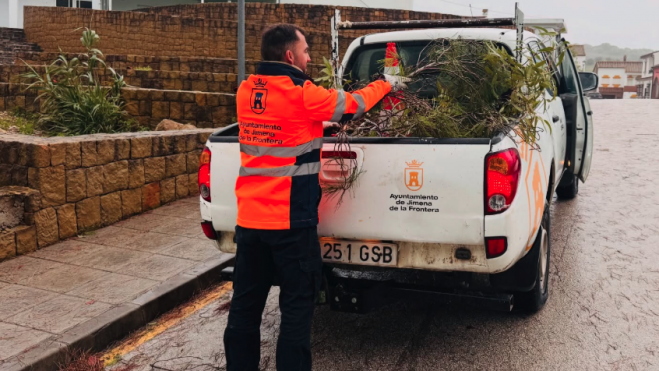 El municipio de Jimena de la Frontera, en la comarca gaditana del Campo de Gibraltar, está lidiando este miércoles 28 de enero con el fuerte viento que sopla en la zona y que está provocando caídas de árboles, ramas y material urbano a la vía pública, después de que este martes el desbordamiento del río Hozgarganta a su paso por esta localidad motivase el desalojo preventivo de 11 vecinos, los cuales ya han podido regresar a sus viviendas. En estos momentos, el ayuntamiento mantiene el nivel 1 del Plan de Emergencia Municipal (PEM).