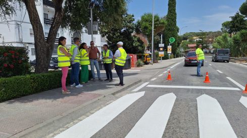 El subdelegado de la Junta de Andalucía en el Campo de Gibraltar, Javier Ros, y la delegada territorial de Fomento, Carmen Sánchez, han visitado los trabajos llevados a cabo por la empresa Conservación de Carreteras Zona Sur Cádiz UTE (UTE Serveo Servicios, SAU Alyon Servicios SA) junto al alcalde de Jimena, Francisco Gómez. La actuación ha consistido en el repintado de marcas viales existentes en la travesía, tanto las longitudinales como las líneas de parada y pasos de peatones (ya sean sobreelevados o a nivel).