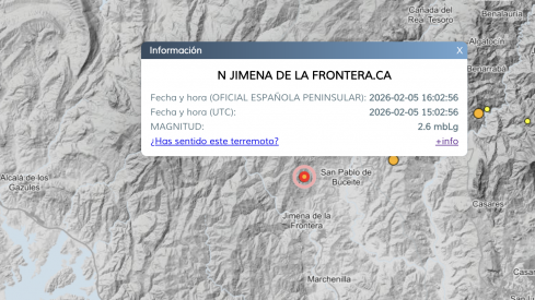 El Instituto Geográfico Nacional (IGN) ha registrado este jueves 5 de febrero de 2026 un terremoto de magnitud 2,6 mbLg con epicentro en las inmediaciones de Jimena de la Frontera.