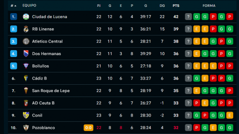 Con este resultado, la Balona encadena tres jornadas sin ganar, aunque se mantiene segunda, a tres puntos del Ciudad de Lucena. El San Roque suma un punto que le deja al acecho de la zona de play-off.