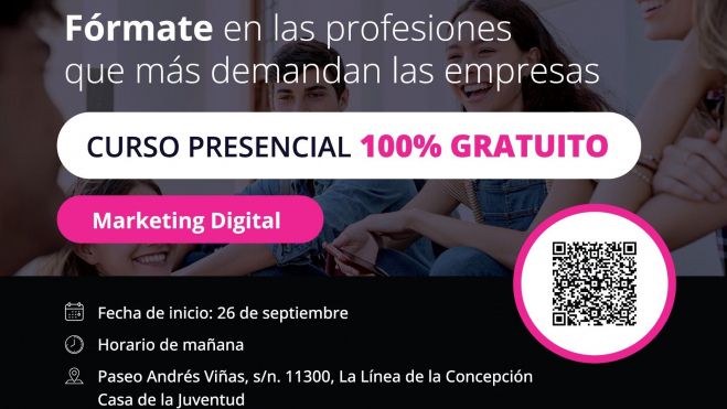 En colaboración del Ayuntamiento de La Línea de la Concepción, el curso se desarrollará desde el 26 de septiembre hasta el 22 de noviembre, en horario de 9.00 a 15.00 horas. Contempla 230 horas de formación teórica, 30 de formación en línea de ocupabilidad y 12 horas de orientación laboral con un experto.