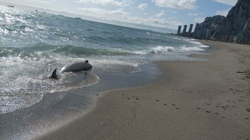 Esta mañana se ha producido un nuevo hallazgo en el litoral de La Línea de la Concepción. El cuerpo sin vida de un delfín ha aparecido en la orilla de la playa de Levante, concretamente en la zona de Santa Bárbara, frente al Estadio Municipal de La Línea.