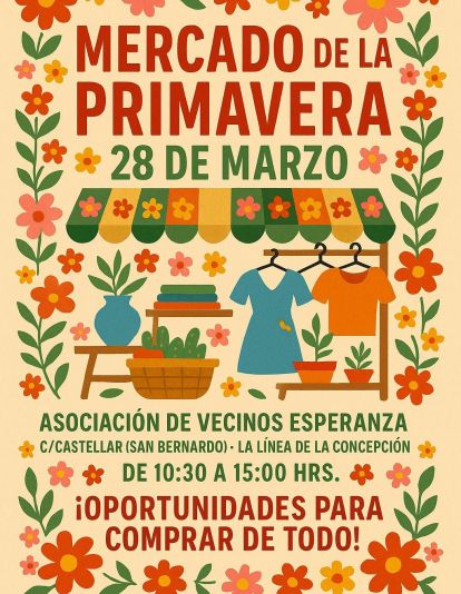 La Asociación de Vecinos Esperanza ha organizado una iniciativa especial para dar la bienvenida a la nueva temporada: el Mercado de la Primavera, que se celebrará este próximo sábado 28 de marzo, desde las 10:30 hasta las 15:00 horas.