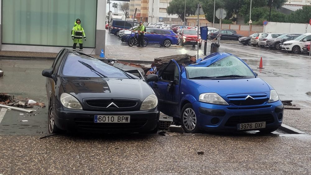 El paso del temporal por La Línea ha provocado la caída de un balcón de una 11ª planta en la zona de Los Junquillos. El suceso no ha dejado heridos, aunque sí daños materiales en dos vehículos que se encontraban estacionados justo debajo del edificio afectado.
