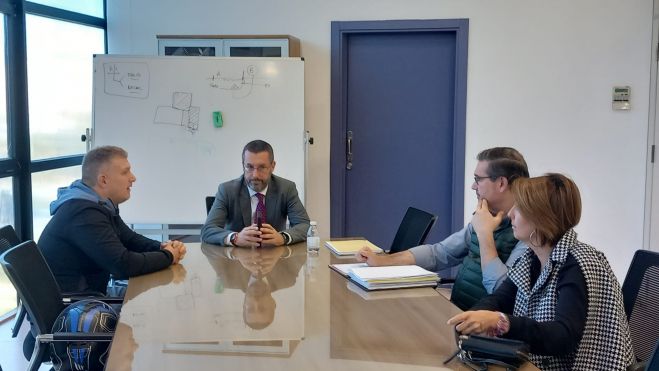 El alcalde de La Línea de la Concepción, Juan Franco, acompañado de los concejales de Asuntos Sociales y Seguridad, Zuleica Molina y Miguel Ángel Bautista, respectivamente, ha mantenido este martes una reunión con Aarón Verdugo, representante de los cinco trabajadores que hasta el momento han venido prestando servicios como vigilante de seguridad en las instalaciones de la Residencia de Tiempo Libre.