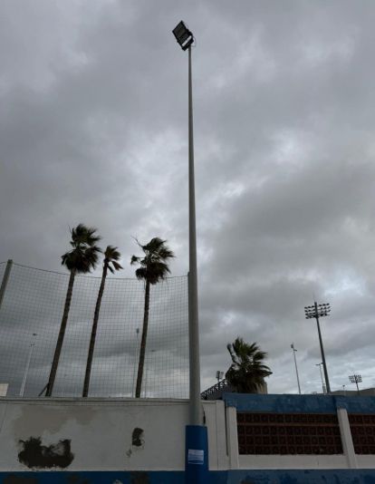 El Ayuntamiento de La Línea de la Concepción ha iniciado la mejora de la iluminación del campo de fútbol municipal Miguel Ángel Izaguirre con la instalación de nuevos focos, una actuación que se ha llevado a cabo gracias a una subvención concedida por la Diputación Provincial de Cádiz dentro de su línea de apoyo a la modernización de instalaciones deportivas municipales.