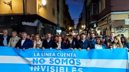 Puntual, a las 20.00 horas, la comitiva comenzaba a andar. En la cabecera de la manifestación Juan Franco escoltado a ambos lados por las portavoces del PSOE y PP en el Ayuntamiento de La Línea, Gemma Araujo y Susana González. Una imagen de unión por La Línea dejando a un lado las siglas políticas por un día. "El pueblo unido jamás será vencido", proclamaban los ciudadanos mientras se dirigían hacia la frontera.