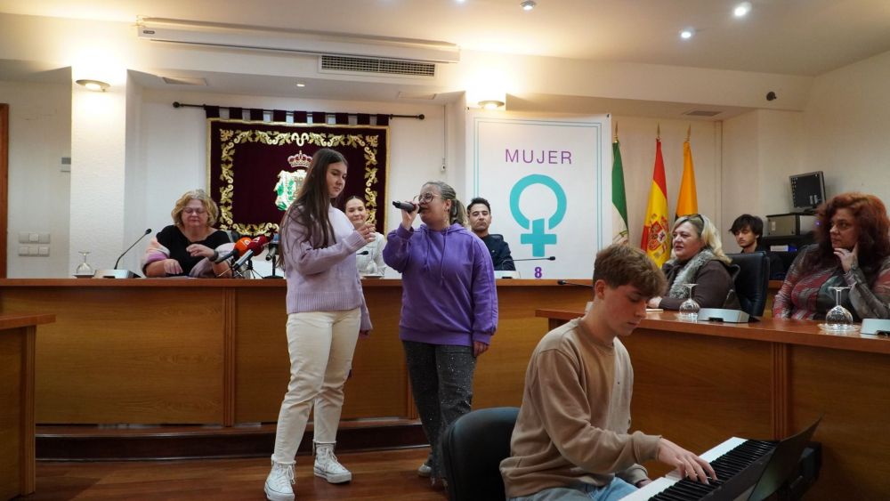 Los Barrios ha celebrado hoy el Acto Institucional del Día Internacional de la Mujer, que se conmemora cada 8 de marzo, con la participación de los jóvenes, en este caso los alumnos de los institutos ‘Sierra Luna’ y ‘Carlos Cano’, que con música y un pequeño teatrillo han defendido la igualdad en el salón de plenos de la Casa Consistorial.
