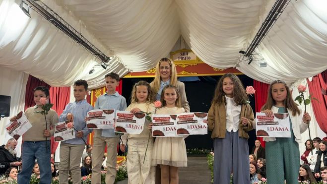 La corte infantil al completo está formada por Selena Herrera Gutiérrez y Sergio Gómez Fernández como reyes, las damas Valeria Perales Salvador, Violeta Dorado Martínez y Teresa Fernández Rubio, y los caballeros Manuel Marín Ruiz, Elías Acosta Silva y Leo Martínez Mora.