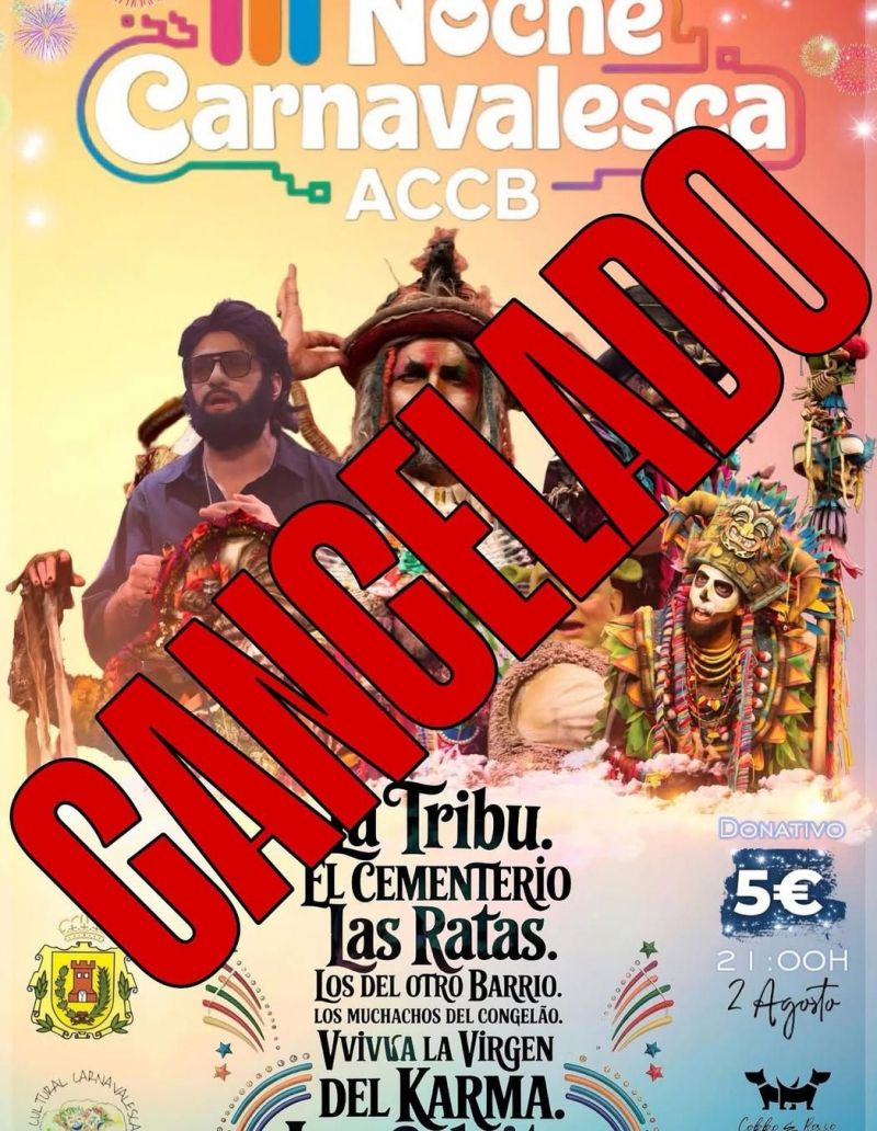 La delegación de Festejos del Ayuntamiento de Los Barrios y la Asociación Cultural Carnavalesca Barreña han informado que por razones técnicas ajenas a la organización el evento de la III Noche Carnavalesca cuya celebración ya se había anunciado unas horas antes ha tenido que ser cancelado.