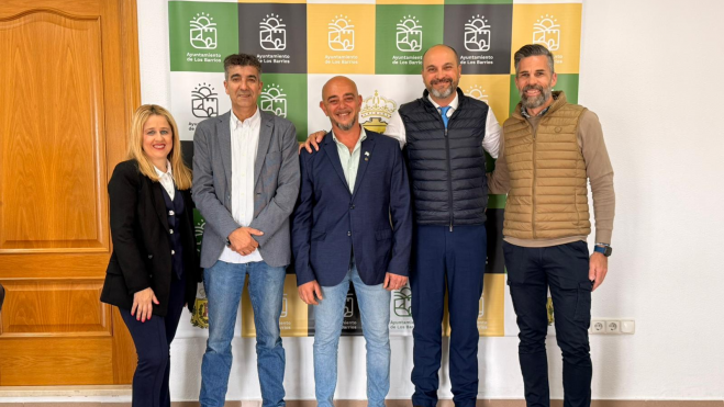 El alcalde de Los Barrios, Miguel Alconchel, junto a la delegada de Ferias y Fiestas, May Gallego, y el edil de Deportes, Raúl Álvarez, han recibido al pregonero de la Feria de Los Barrios en honor a San Isidro Labrador 2026, Carlos Contreras García, designado por la Asociación de Pregoneros de la Villa de Los Barrios. Un acto donde ha estado presente el presidente de la Peña Cultural Taurina ‘Toro Embolao de Los Barrios.’