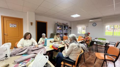 El grupo de costura de mujeres voluntarias que sostiene a esta asociación con su actividad