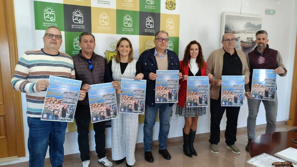 La delegada de Participación Ciudadana, Sara Lobato; la concejala de Cultura, Cristina Marchante; y el delegado de Deportes, Raúl Álvarez; han presentado este mediodía junto a directivos de la Peña Cultural Deportiva Atlético Los Barrios el evento la ‘I Dulce Navidad’.