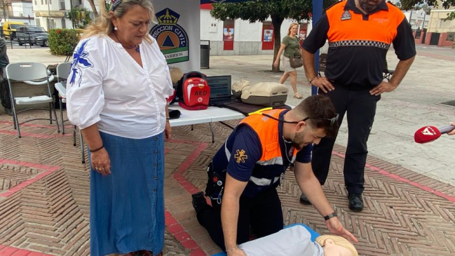 Voluntarios de Protección Civil de Los Barrios han impartido este jueves una jornada práctica sobre técnicas de reanimación cardiopulmonar (RCP) dirigida a los vecinos del municipio, con motivo del Día Internacional de la Reanimación Cardiopulmonar.