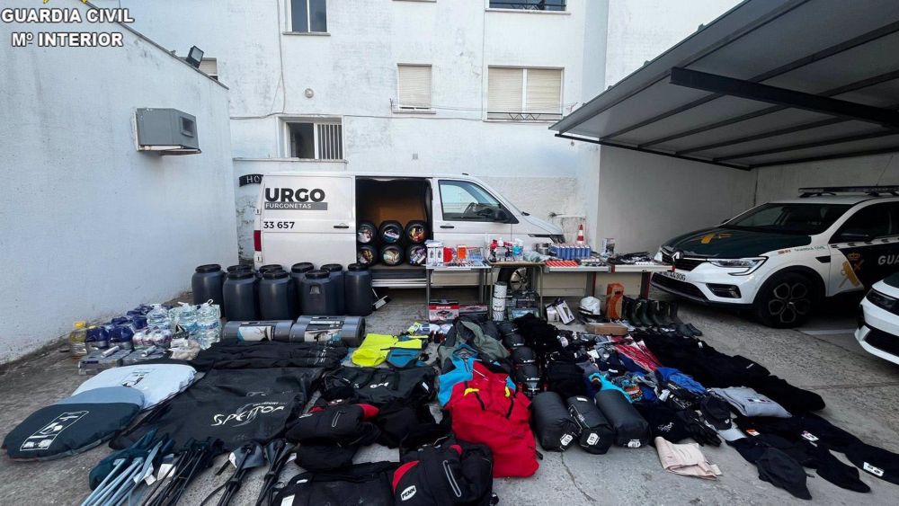 Entre el material había trajes completos impermeables y de abrigo, fundas de móvil herméticas, pantalones, camisetas y chaquetones térmicos, sacos grandes impermeables, numerosas bombonas de camping-gas, varias garrafas de aceite de Yamaha para motor marino, material y herramientas para la reparación y mantenimiento de motores, cuchillos náuticos, cascos Jet --utilizados para la conducción de vehículos quad y embarcaciones de alta velocidad--, y 15 bidones impermeables y herméticos de 60 litros, seis de ellos llenos de variedad de víveres.
