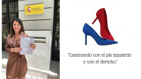 Junto a ella ha publicado otro gráfico en el que aparecen dos zapatos de tacón, uno rojo y otro azul, junto a la frase 'Caminando con el pie izquierdo y con el derecho'. Es un lema que ha usado desde que abandonó las filas de Vox y anunció que iba a hacer el Camino de Santiago, llamando a acompañarla a sus seguidores.