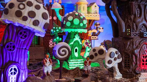 La exposición contará con diferentes elementos del mundo de Wonka, como un pueblo formado por edificios fantasiosos, piruletas gigantes y un auténtico río de miel y frutos secos. La muestra, que reciclará todo el chocolate para futuras obras, también incluirá una auténtica Fábrica de Chocolate, con chimeneas genuinas que proyectarán humo.