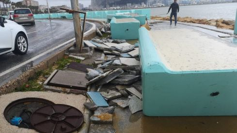 El temporal se ceba con La Línea y destruye su Paseo Marítimo de Poniente. Losas levantadas y rotas, malecones hundidos y desplazados. Un manto de alga asiática y otros residuos donde antes había arena y arena donde antes había calzada. El mar se ha tragado parte de este "paseo del colesterol".