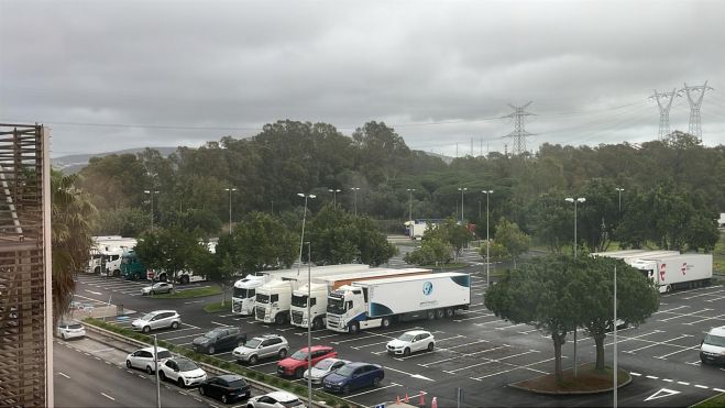 Los camiones que esperan embarcar desde el Puerto de Algeciras continúan ocupando zonas de aparcamiento, áreas de descanso y viales de gran parte de la comarca, una situación visible para cualquiera que circule por las carreteras del arco de la Bahía. Aunque los barcos han comenzado a operar de nuevo en las líneas marítimas del Estrecho de Gibraltar, tanto con Ceuta como con Marruecos, fuentes portuarias estiman que la normalidad no se recuperará hasta principios de la próxima semana.