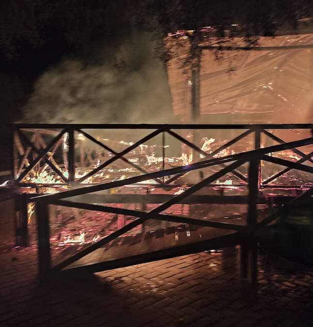 En la madrugada del pasado sábado un incendio, cuyas causas se están investigando, calcinaba uno de los restaurantes más emblemáticos del Campo de Gibraltar, el asador Cancha II, localizado junto a las canchas de Ayala Polo. El fuego devoró el local de madera en su totalidad y los bomberos tuvieron que emplear cuatro horas y 20.000 litros de agua para sofocar las llamas.