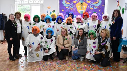 Las ediles Eva Gil y Rocío Fernández estuvieron presentes en la sede de la asociación La Charca donde se realizó el acto junto a la presidenta de Asansull, María Luisa Escribano, monitoras del taller y familiares de los mayores.