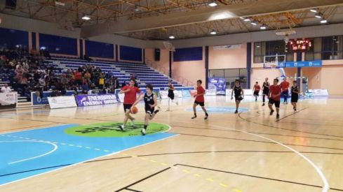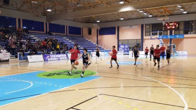 Integrantes del equipo Cadete del Baloncesto Centurias de San Roque realizaron un partido de exhibición en el descanso del encuentro de la categoría LEB Plata del baloncesto nacional, que el pasado sábado enfrentó en Algeciras a Enerdrink UDEA y Bodegas Rioja Vega CB Clavijo.