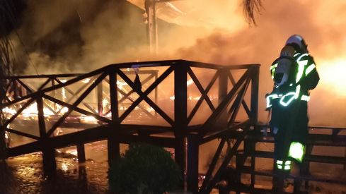 El fuego se originó sobre las 03.30 horas de la pasada madrugada. Hasta el lugar se desplazaron efectivos de bomberos del Parque de San Roque y apoyo desde el Parque de Algeciras. Al llegar, los bomberos se encontraron con que el restaurante, que es de madera, estaba ardiendo en su totalidad.