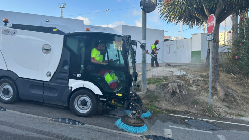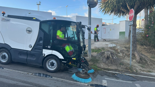 La Delegación de Limpieza Viaria, coordinada por el teniente de alcalde Juan Serván, ha llevado a cabo esta mañana una limpieza integral en la zona circundante a la barriada de Los Olivillos, en el casco de San Roque. La actuación, realizada a través de la empresa Valoriza, ha abarcado tanto áreas residenciales como espacios públicos cercanos al edificio municipal de Emadesa y al campo de fútbol Vicente Blanca.