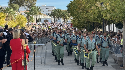 Posteriormente, el Cuarto Tercio de la Legión protagonizó un imponente desfile desde la Plaza de Andalucía hasta la Plaza de las Constituciones, atravesando la Alameda Alfonso XI, donde los legionarios recibieron el aplauso unánime del público.