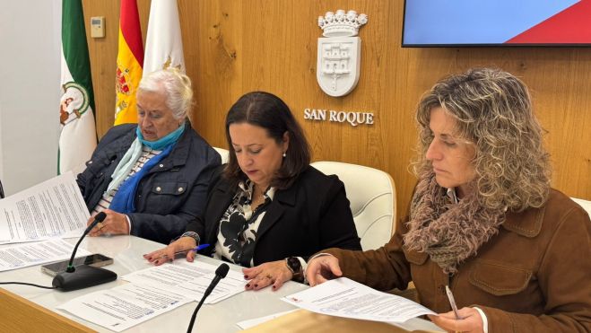 El Ayuntamiento de San Roque ha suscrito un convenio de colaboración con la Asociación Niños de Ucrania y Andalucía Campo de Gibraltar. La teniente de alcalde, María del Mar Collado, junto a la secretaria general, Ana Núñez, han firmado en alcaldía dicho convenio acompañados por la presidenta de la entidad, Lola Pérez.