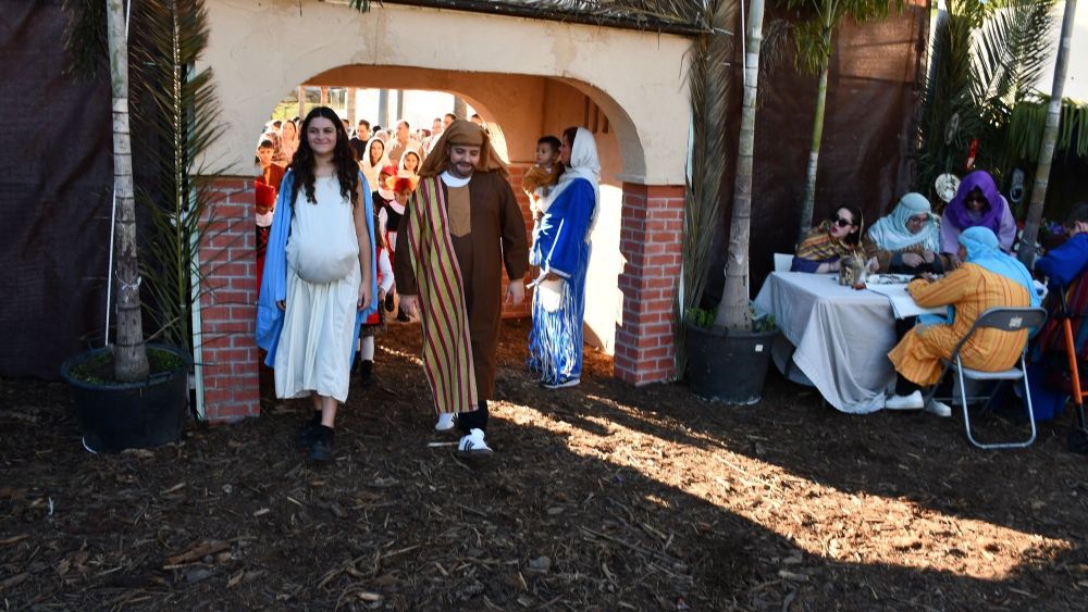 La entrada de María y José por debajo de una impresionante puerta ha servido de inicio, en la tarde de este sábado, para el IX Belén Viviente de Taraguilla. Un gran número de vecinas y vecinos de la barriada participan con ropajes de época y regentando más de una veintena de puestos en una puesta de escena impecable que cuenta además con animación de grupos música y baile, y que continuará durante toda la jornada del domingo.