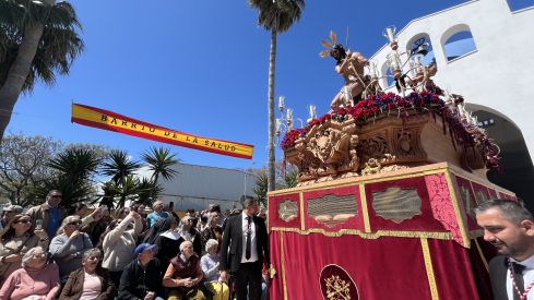 La procesión ha comenzado a las 14.45 horas con un sol radiante y temperaturas primaverales. Tras una salida con cierta dificultad, el paso ha conseguido abandonar su templo entre aplausos y emoción.