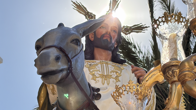 Con mensaje de paz y amor, que tanta falta hace en la actualidad, Jesús de Nazaret hizo su entrada a lomos de un humilde burro en Jerusalén, en el que es uno de los pasajes más luminosos y alegres del Nuevo Testamento. Una luz y una alegría que atraviesan los siglos para repetirse cada Domingo de Ramos. En Algeciras, un sol más veraniego que primaveral, una bóveda indiscutiblemente celeste y una multitud de algecireños han recibido a las puertas salesianas a la Borriquita y María Santísima de la Alegría, los primeros pasos de la Semana Santa 2026.