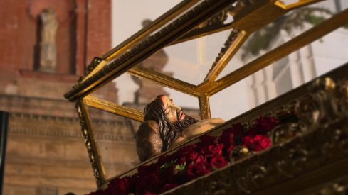 Ajeno al pesar, unos niños juegan en la Plaza Alta de Algeciras. Los mayores mandan guardar silencio cuando, a lo lejos, comienza a verse el brillo dorado de la urna del Santo Entierro. Entonces, el sonido de la icónica fuente se impone en la noche de Viernes Santo. La Real, Antiquísima y Venerable Cofradía del Santo Entierro y María Santísima de la Soledad, fundada en 1752, encara el final de un recorrido cargado de historia de la ciudad, recogimiento y fe.