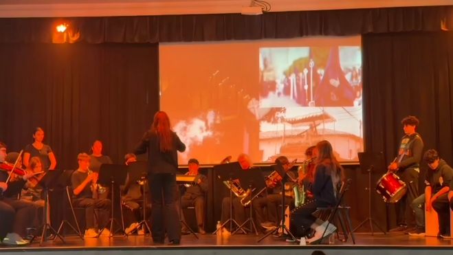 Entre el aroma a incienso y una atmósfera de profunda emoción, el IES Isla Verde ha celebrado su Concierto de Semana Santa, una cita que ha trascendido lo escolar para convertirse en un evento artístico en el que fusiona el rigor de la orquesta con el duende del flamenco.