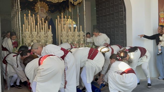 Uno de los momentos más impactantes de la jornada se vivió en la salida de Nuestra Señora de la Merced. Las costaleras se enfrentaron a una maniobra especialmente complicada, teniendo que desmontar parte del trono para poder franquear la puerta del templo y, posteriormente, portar a pulso a la Virgen por las escaleras. Un esfuerzo cargado de sacrificio y devoción que desembocó en lágrimas de emoción entre las propias costaleras, protagonizando una de las estampas más conmovedoras de la noche.