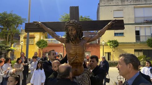 El recorrido dura aproximadamente una hora, y la imagen del Cristo es portada por vecinos de la barriada, contando con el acompañamiento musical de un trío de capilla. La talla del Cristo es obra del imaginero sanroqueño Luis Ortega Brú, que realizó en 1955.
