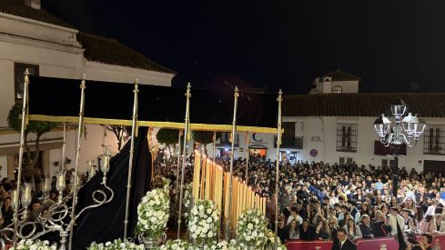 La medianoche en San Roque trae consigo uno de los momentos más solemnes de su Semana Santa. La Ilustre Hermandad del Santo Entierro y Nuestra Señora de la Soledad puso en la calle, a las 00:00 horas, su paso de palio marcado por el recogimiento, el silencio y la emoción contenida.