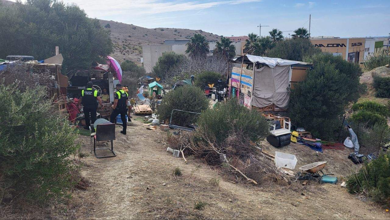 En el operativo de desalojo, que se llevó a cabo por la Policía Local y Guardia Civil de Tarifa, se detuvo a una persona por encontrarle material robado en el momento de su identificación.