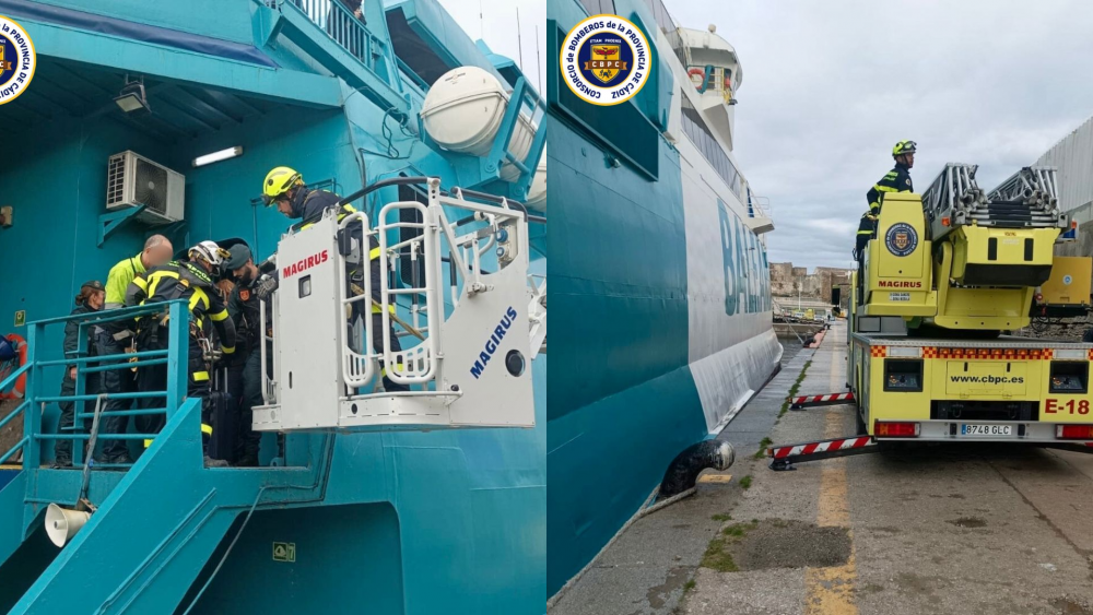 Un total de cinco efectivos y tres vehículos del Consorcio de Bomberos de la Provincia de Cádiz (CBPC), procedentes de los parques de Tarifa y Algeciras, han intervenido en la mañana de este martes, 30 de diciembre, para evacuar a unos 60 pasajeros del ferry Jaume I en el puerto de Tarifa.
