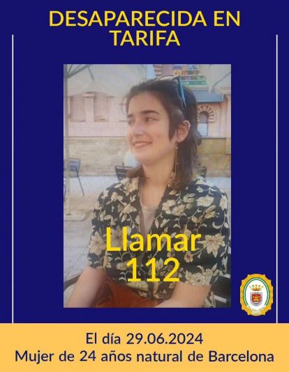 La Policía Local de Tarifa informa de la desaparición de una joven de 24 años, natural de Barcelona.