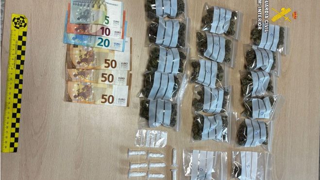 Tras proceder a su identificación, los guardias civiles comprobaron que se trataba de un ciudadano de nacionalidad alemana que portaba diversas sustancias estupefacientes repartidas en pequeñas dosis, dispuestas para su supuesta distribución y venta.
