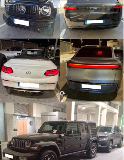 Entre los vehículos recuperados destacan dos Mercedes AMG G63, un Audi RS Q8, dos Audi RS Q3 y dos Range Rover Sport, con un valor aproximado de un millón y medio de euros. Se trataba de vehículos nuevos o con apenas unos meses desde su matriculación.