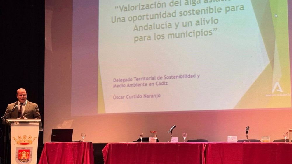 El delegado territorial de Sostenibilidad y Medio Ambiente de la Junta de Andalucía, Óscar Curtido, ha participado en una jornada sobre el alga invasora desarrollada en Tarifa (Cádiz), donde ha ofrecido la ponencia titulada 'Valorización del alga asiática: Una oportunidad sostenible para Andalucía y un alivio para los municipios', partiendo de una situación de proliferación de esta especie invasora que plantea "un desafío ambiental y socioeconómico de gran magnitud".