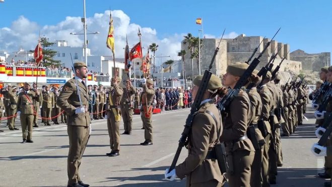 Hasta 130 personas han participado este viernes en la jura de bandera española celebrada en Tarifa, un acto civil y militar organizado por el Regimiento de Artillería de Costa nº4 del Ejército de Tierra y el Ayuntamiento de Tarifa. La ceremonia ha tenido lugar en la superficie portuaria más próxima al casco urbano, donde se ha vivido una jornada solemne y emotiva.