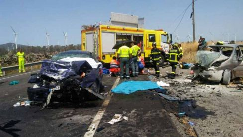 Bomberos del CBPC en los parques de Tarifa y Algeciras intervienen tras un accidente de tráfico ocurrido esta mañana en la carretera N-340 km. 59, en Tarifa. El aviso se produce en la Sala de Emergencias del 085 a las 11:20 horas alertando de un accidente con varios atrapados. Bomberos se traslada al lugar, y comprueba que se ha producido un choque frontal entre dos vehículos, un Citroën Xsara y un Mitsubishi. El choque se produce cuando uno de los vehículos invade el carril contrario. El impacto es especialmente grave por el lado de los copilotos. Ambos vehículos están ocupados por dos hombres como conductores y dos mujeres de copiloto. Bomberos se dividen para rescatar a los atrapados. En el Citroën Xsara rescatan al conductor, mientras que su acompañante, muy atrapada y con numerosas roturas en piernas y brazos y posible aplastamiento de tórax. Una vez en la camilla sufre una parada cardiorrespiratoria que finaliza con su fallecimiento tras una hora intentando su reanimación por parte de Servicios Sanitarios. Se trata de una mujer de 41 años de Sevilla. Al confirmarse su fallecimiento, se pospone el rescate del cuerpo para atender previamente al resto de heridos. En el otro vehículo excarcelan a la copiloto, en estado muy grave, que sufre una parada cardiorrespiratoria durante el traslado al hospital. Todos los atrapados lo están por la parte frontal del vehículo El estado de los coches tras el impacto hace que las labores de excarcelación sean muy complicadas. Bomberos corta y separa las partes con material hidráulico de excarcelación hasta liberar los cuerpos y ponerlos a disposición de los Servicios Sanitarios. En la zona ha habido grandes retenciones del tráfico.