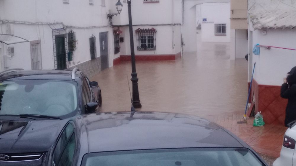 Desde la zona de La Fábrica, un vecino graba desde su casa mientras trata de explicar la dimensión de las inundaciones. "El cartel de San Martín del Tesorillo ha desaparecido, y el agua llega casi hasta arriba de unas plazas de parking que tiene unos dos metros", expresa, mientras que indica que en el patio de su vivienda el agua le llega a la cintura.